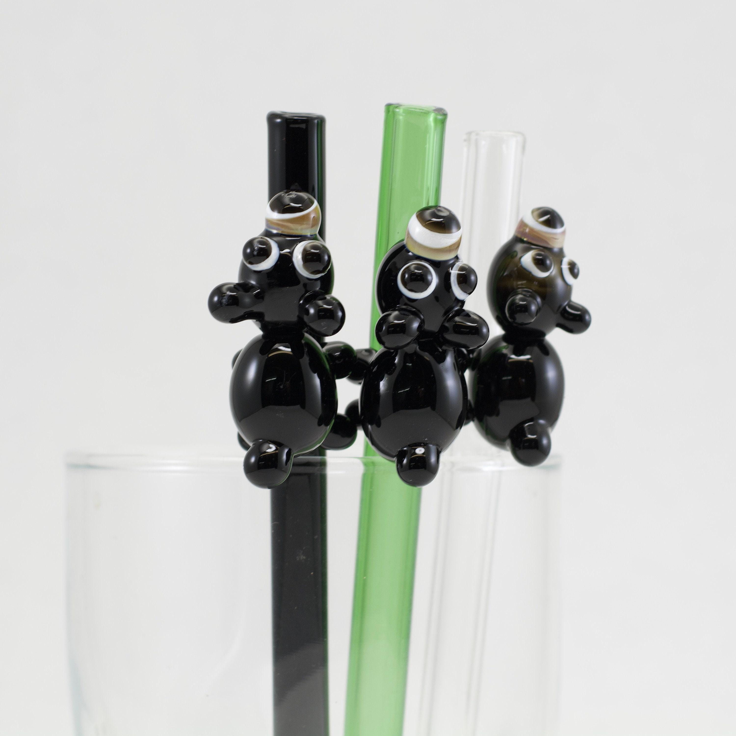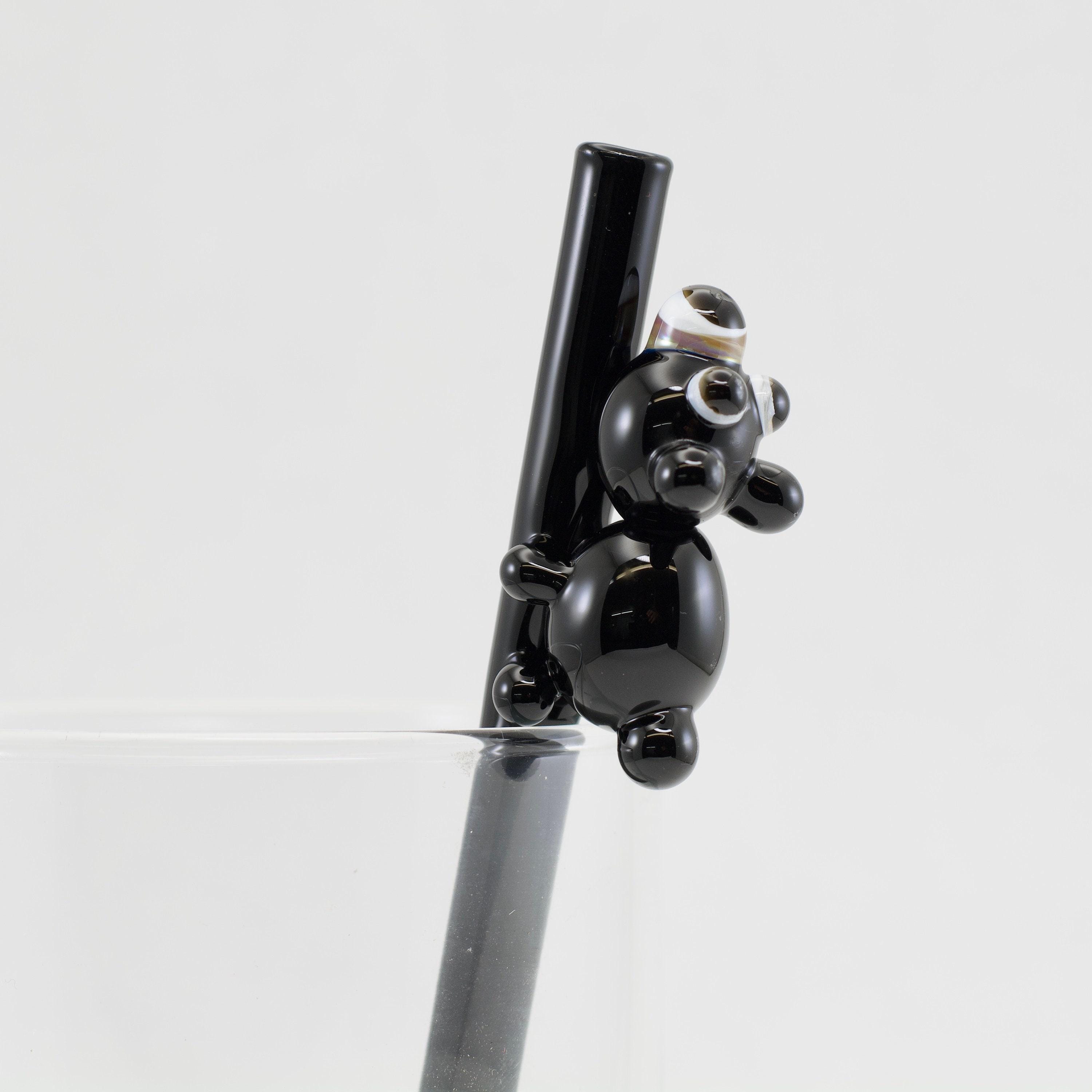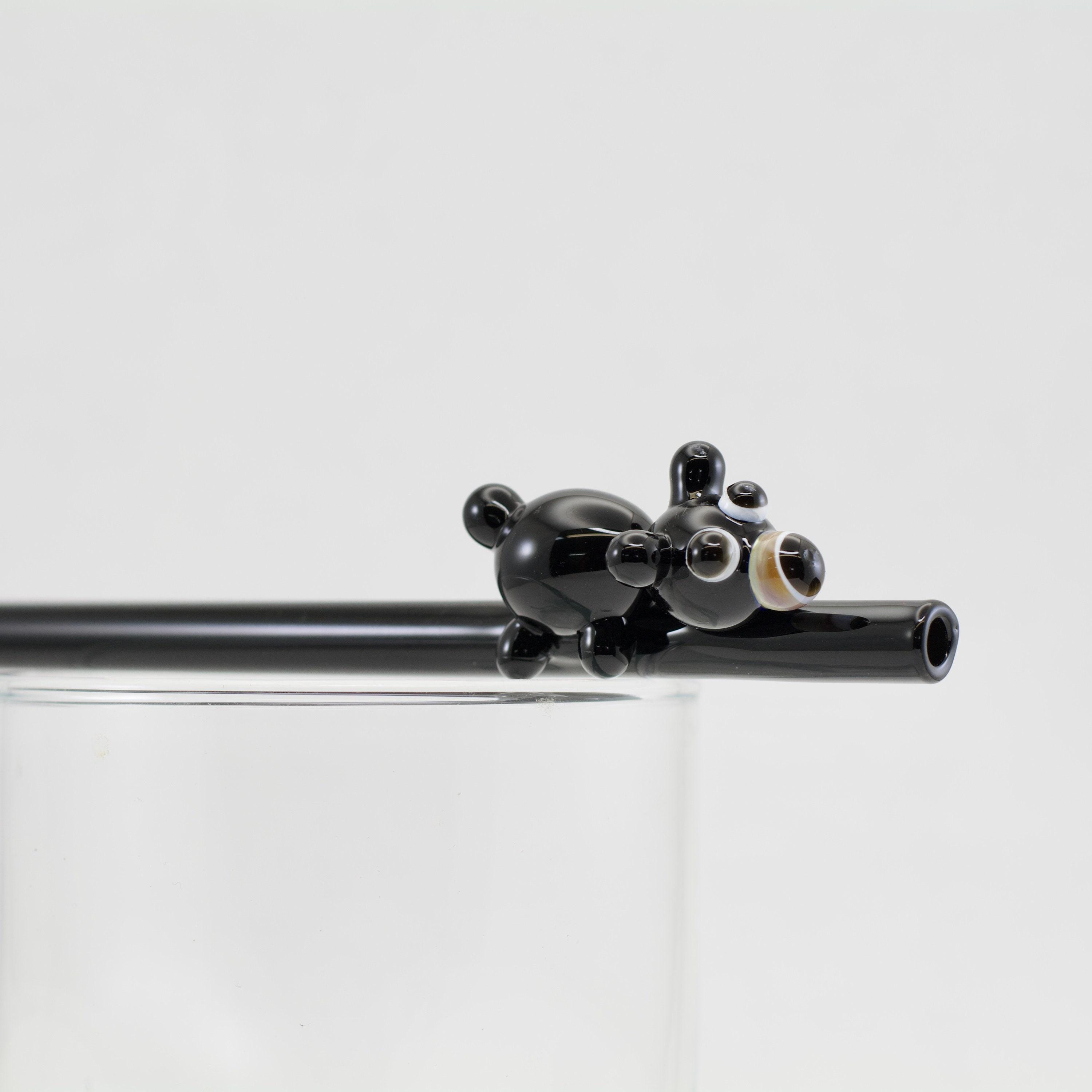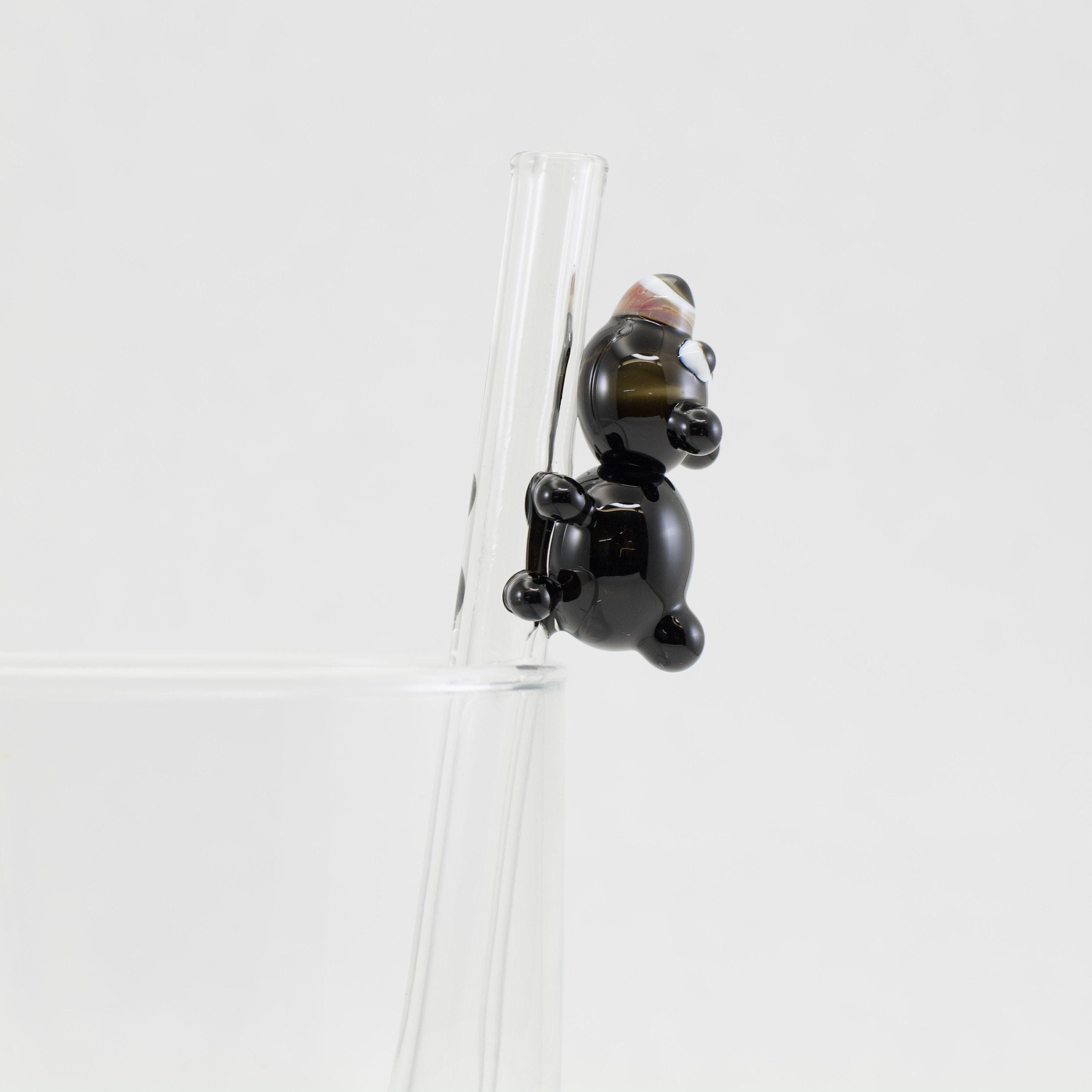 Reusable hand-blown cocktail glass straw with a flamework Appalachian Black Bear. Made to order, created, and shipped within 1-2 weeks.