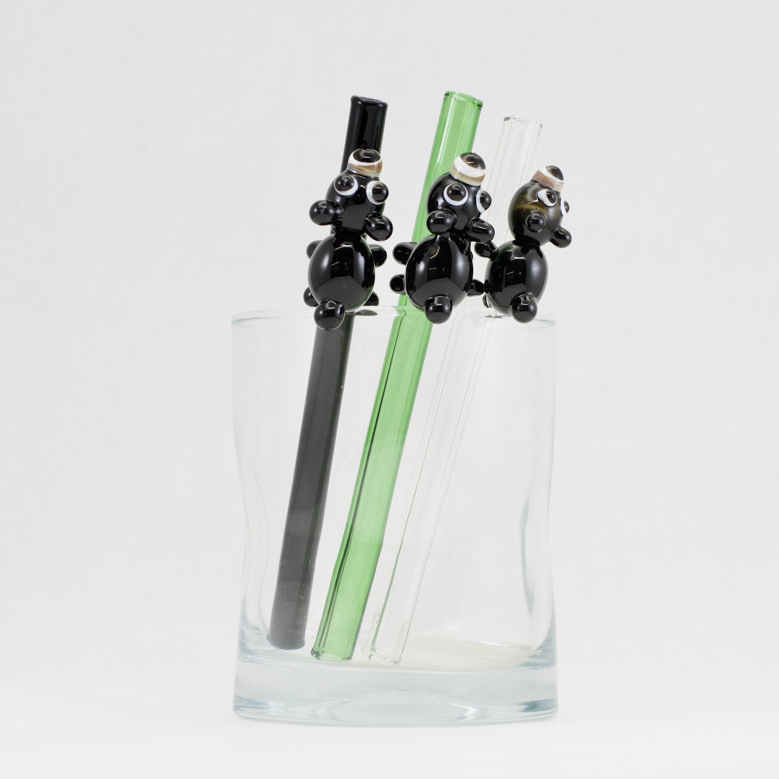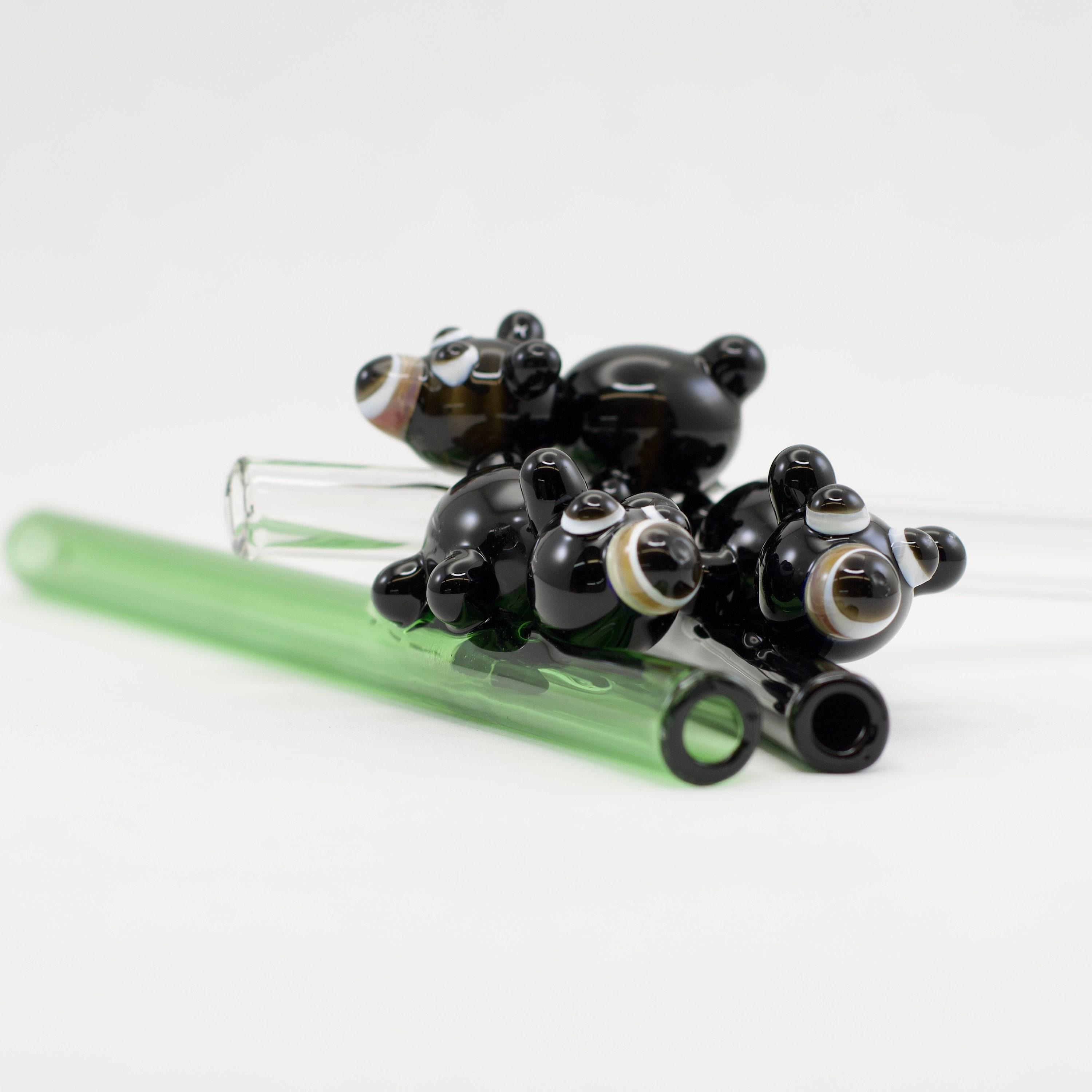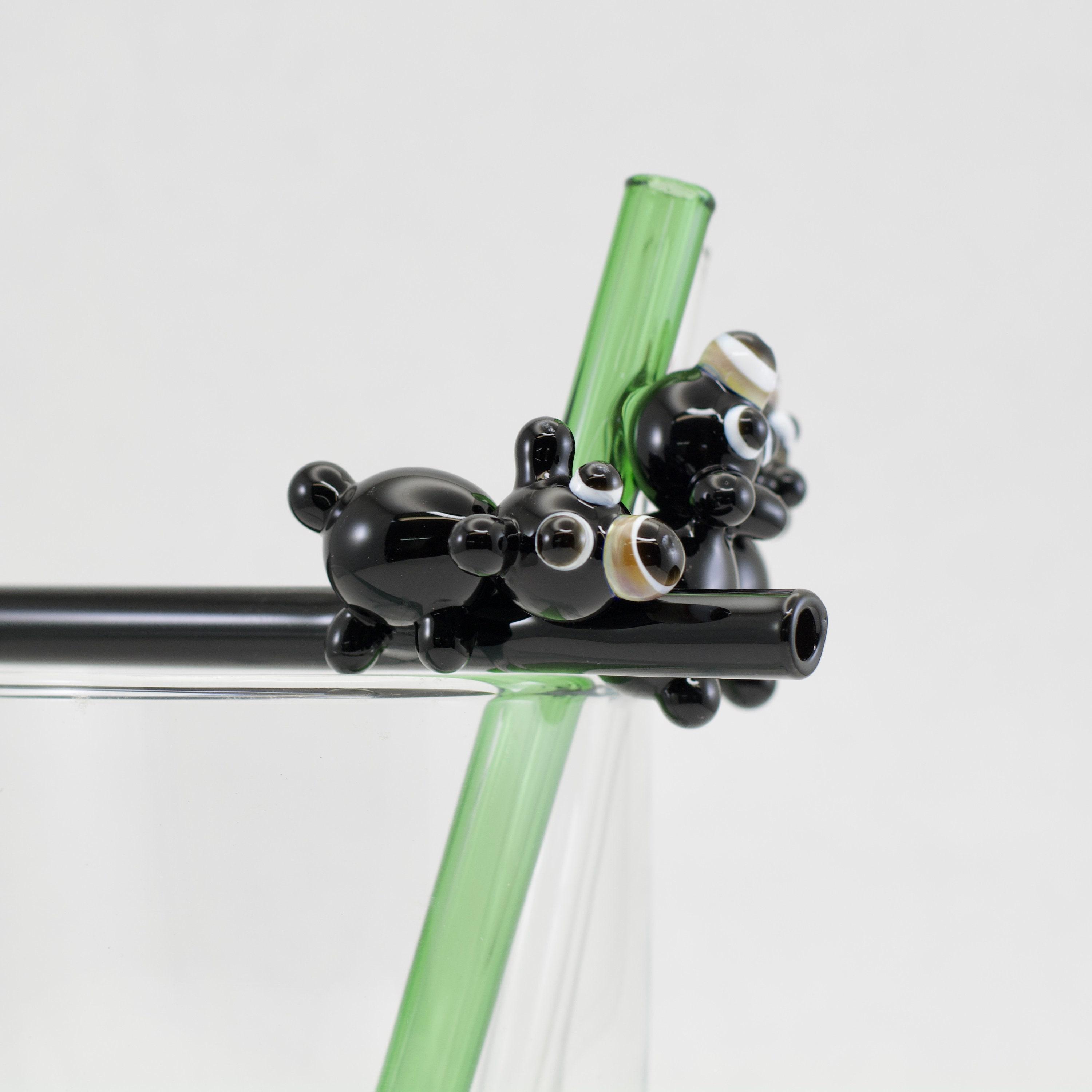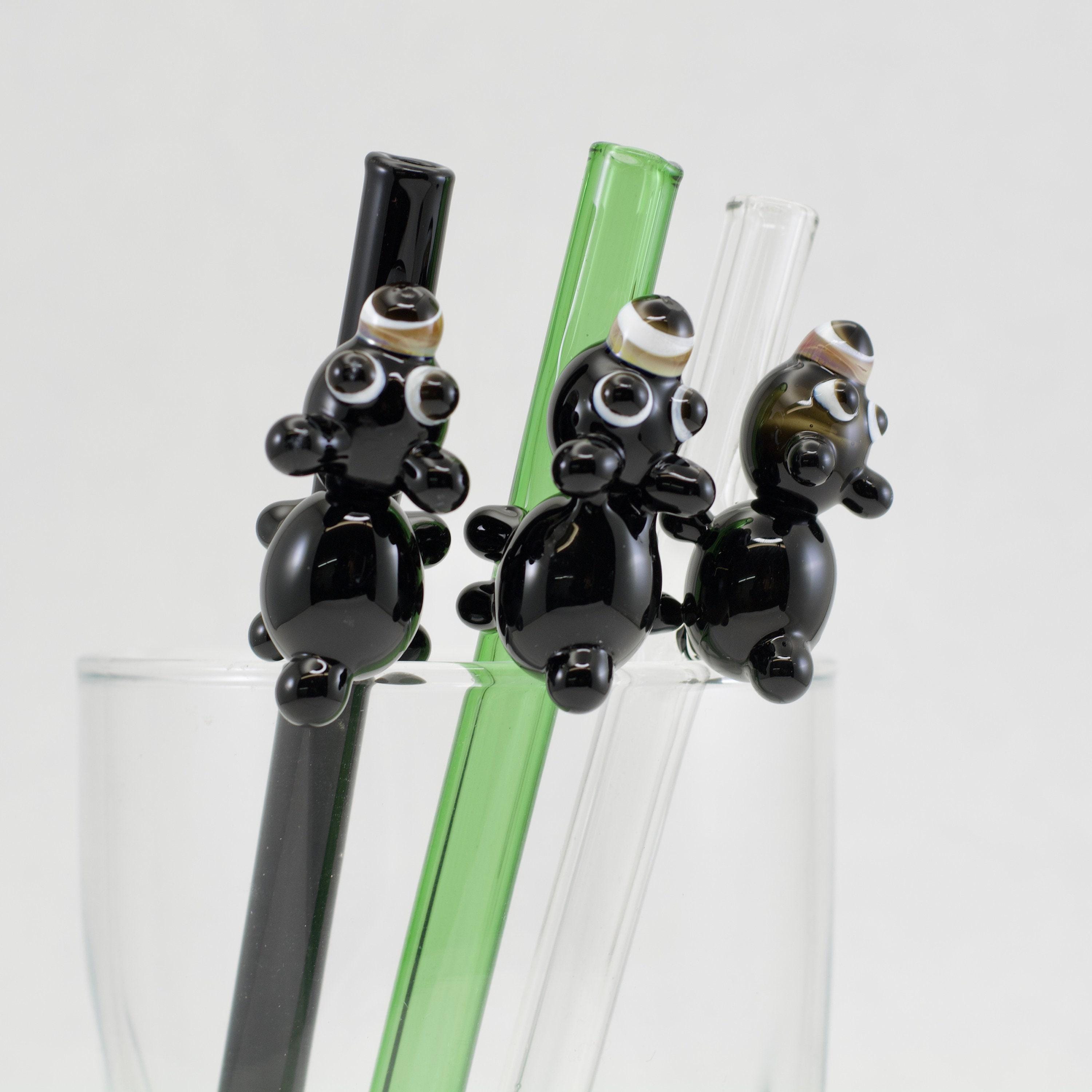 Reusable hand-blown cocktail glass straw with a flamework Appalachian Black Bear. Made to order, created, and shipped within 1-2 weeks.