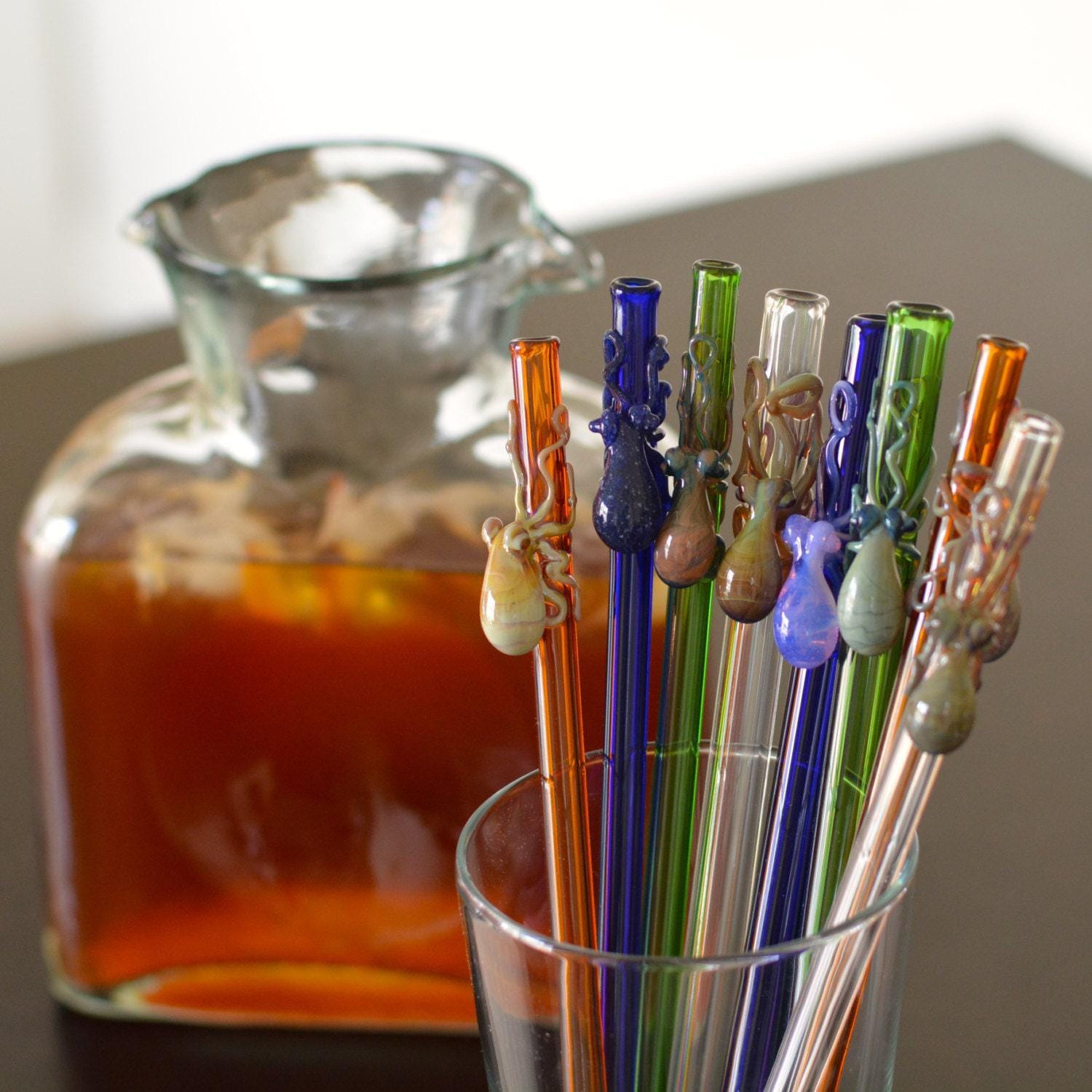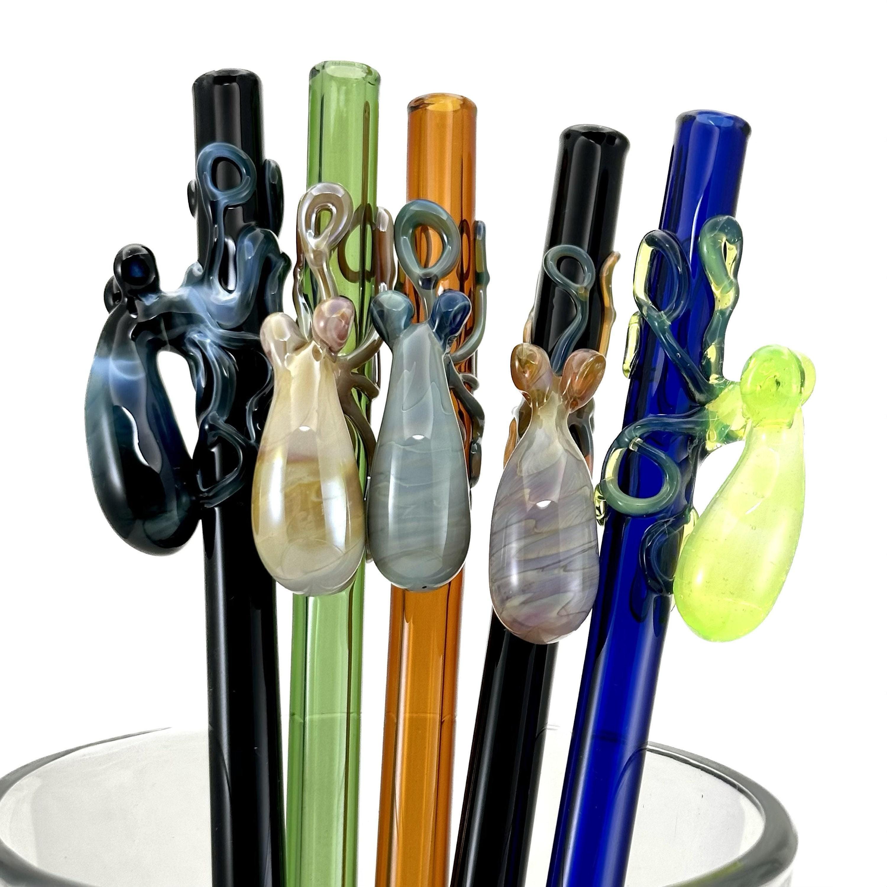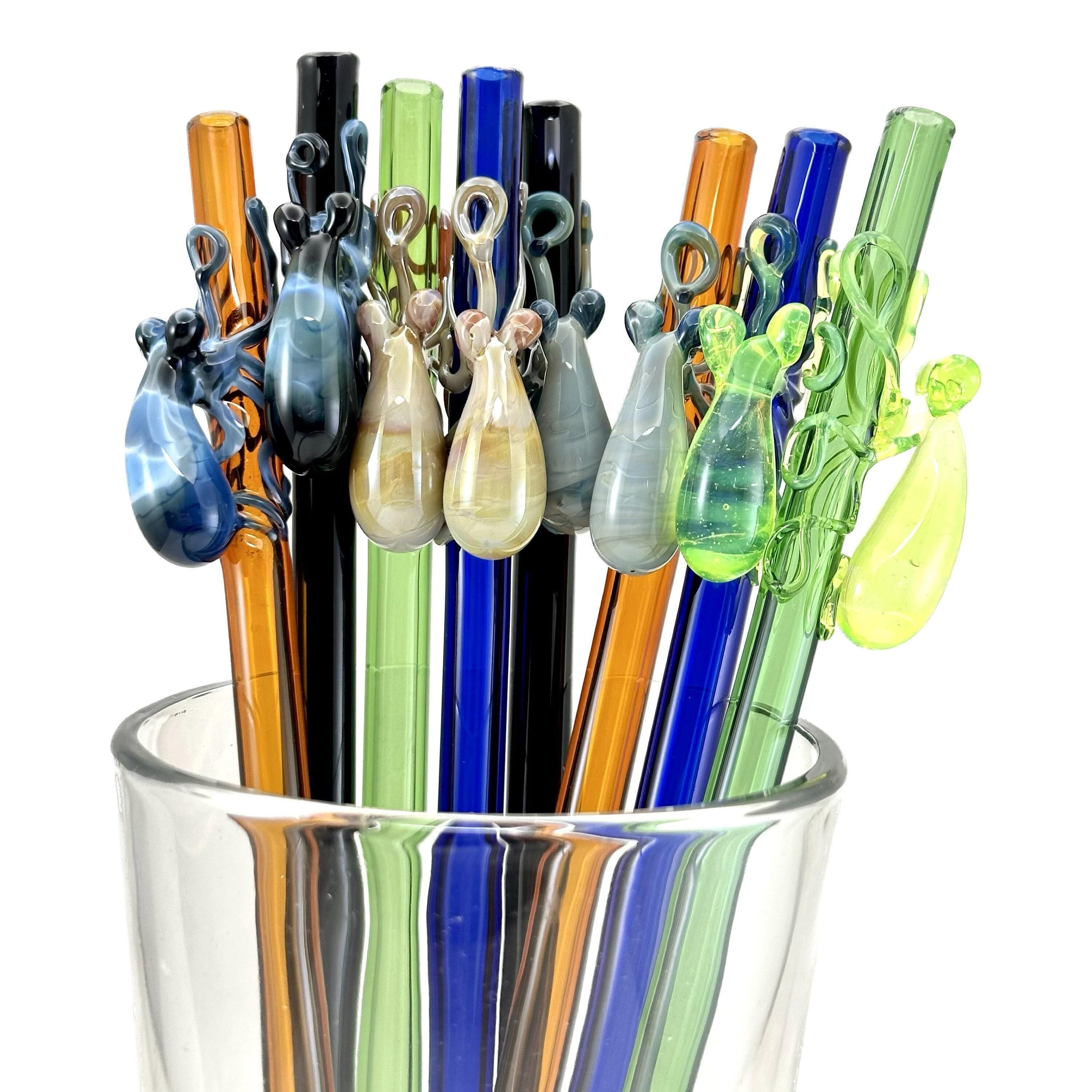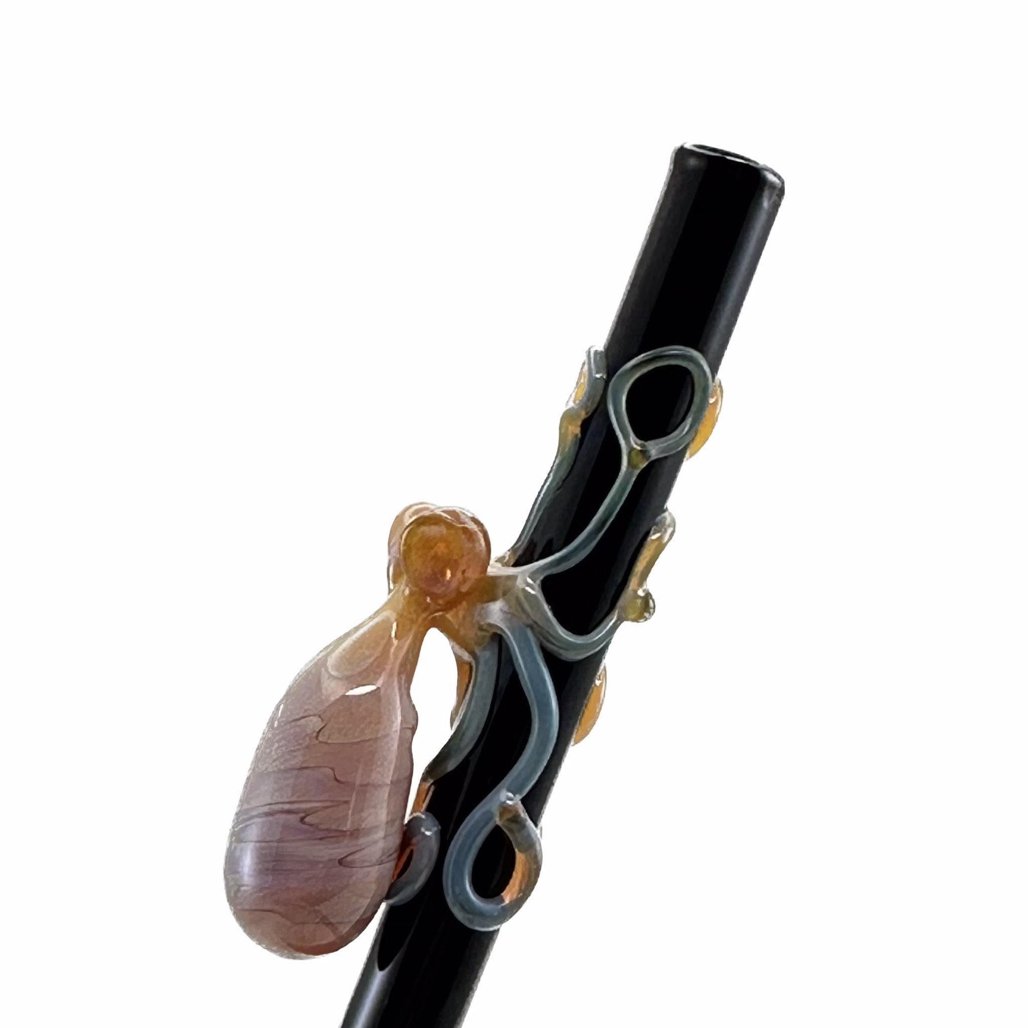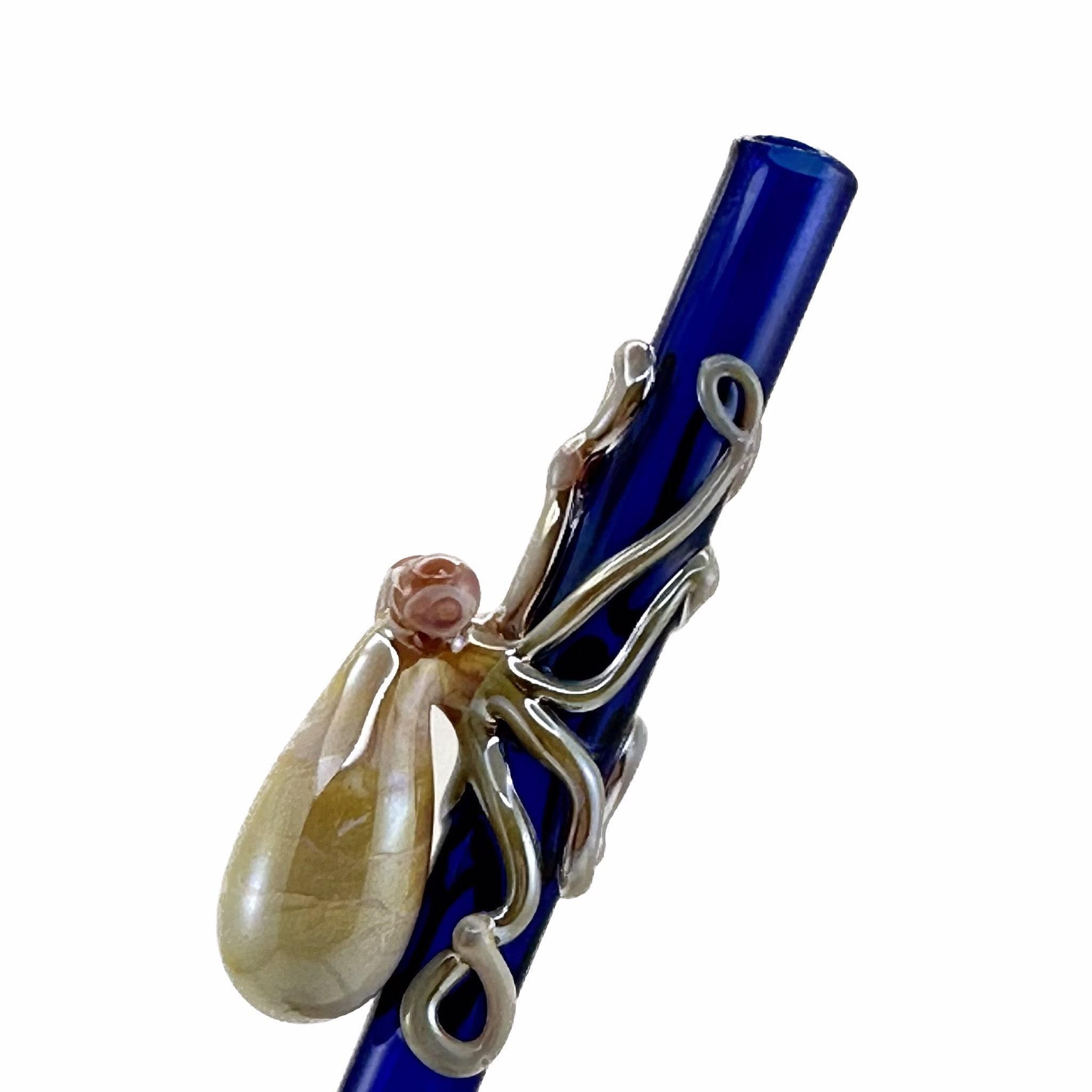 Reusable, dishwasher safe hand-blown glass straw with a flamework octopus. Made to order, created, and shipped within 1-2 weeks