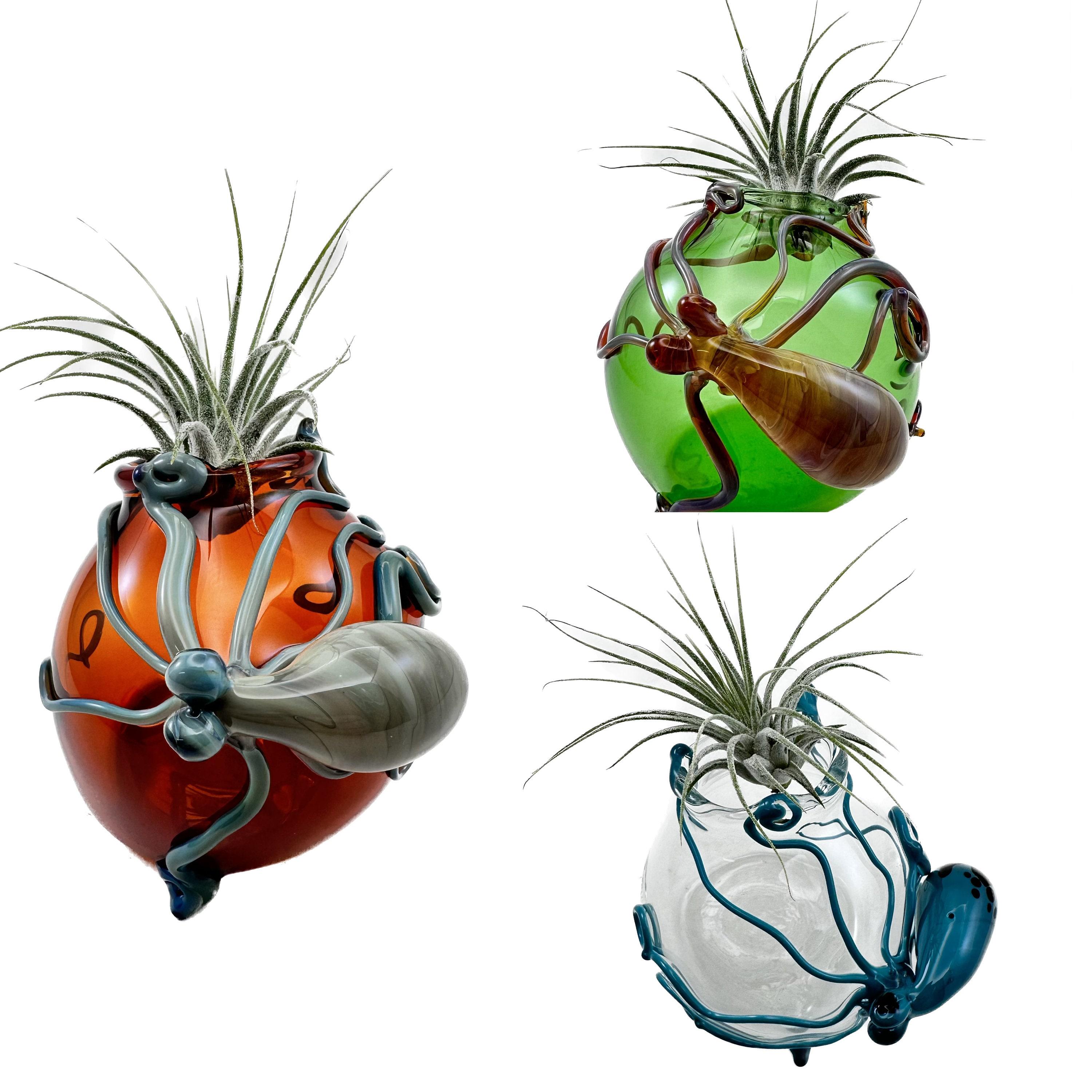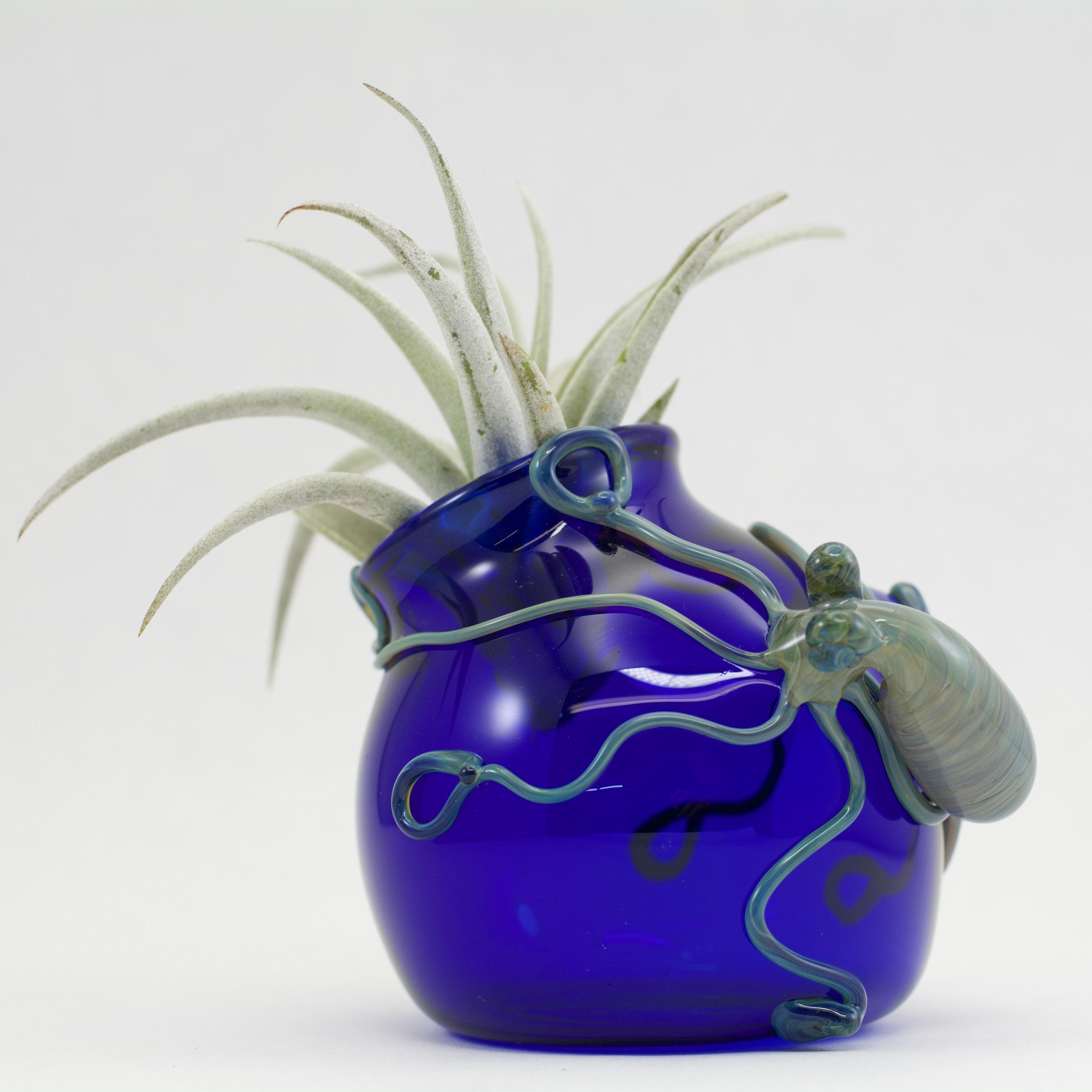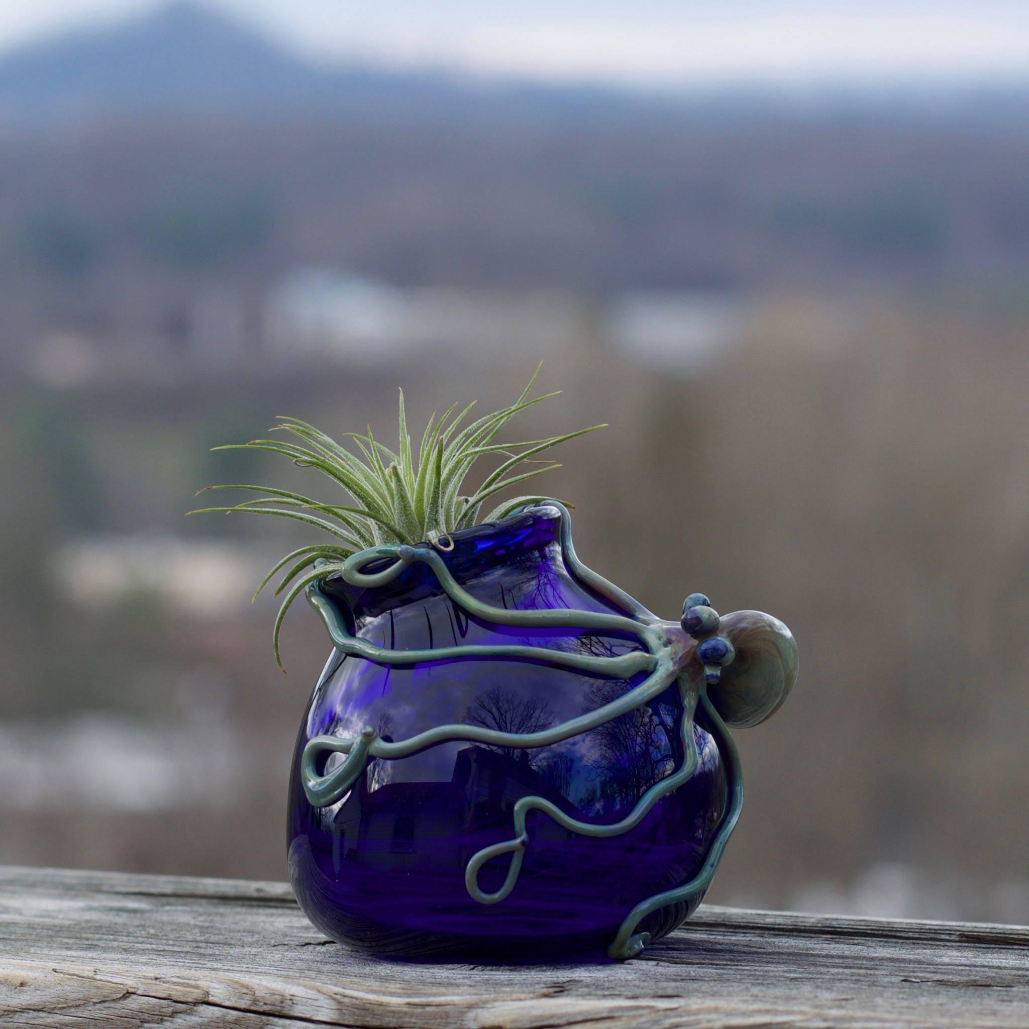 Elegant hand blown Octopus round sitting vessel thick walled, making it much more durable than store bought globes. A lovely way to add nature to your decor. Made to order, created and shipped within 1-2 weeks.