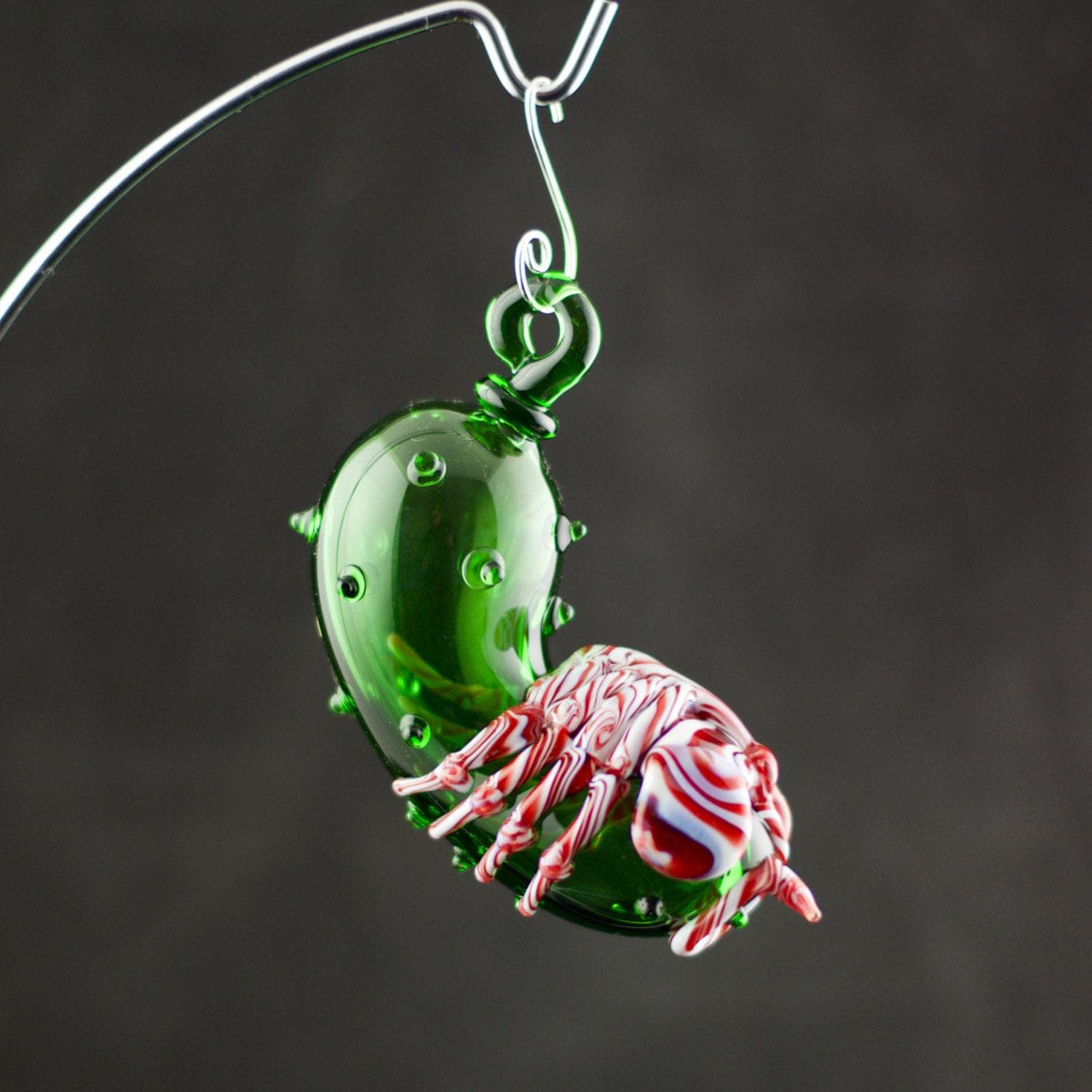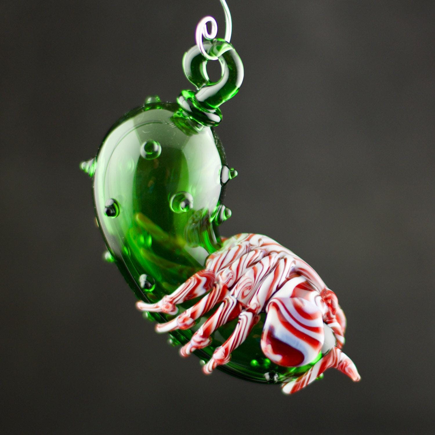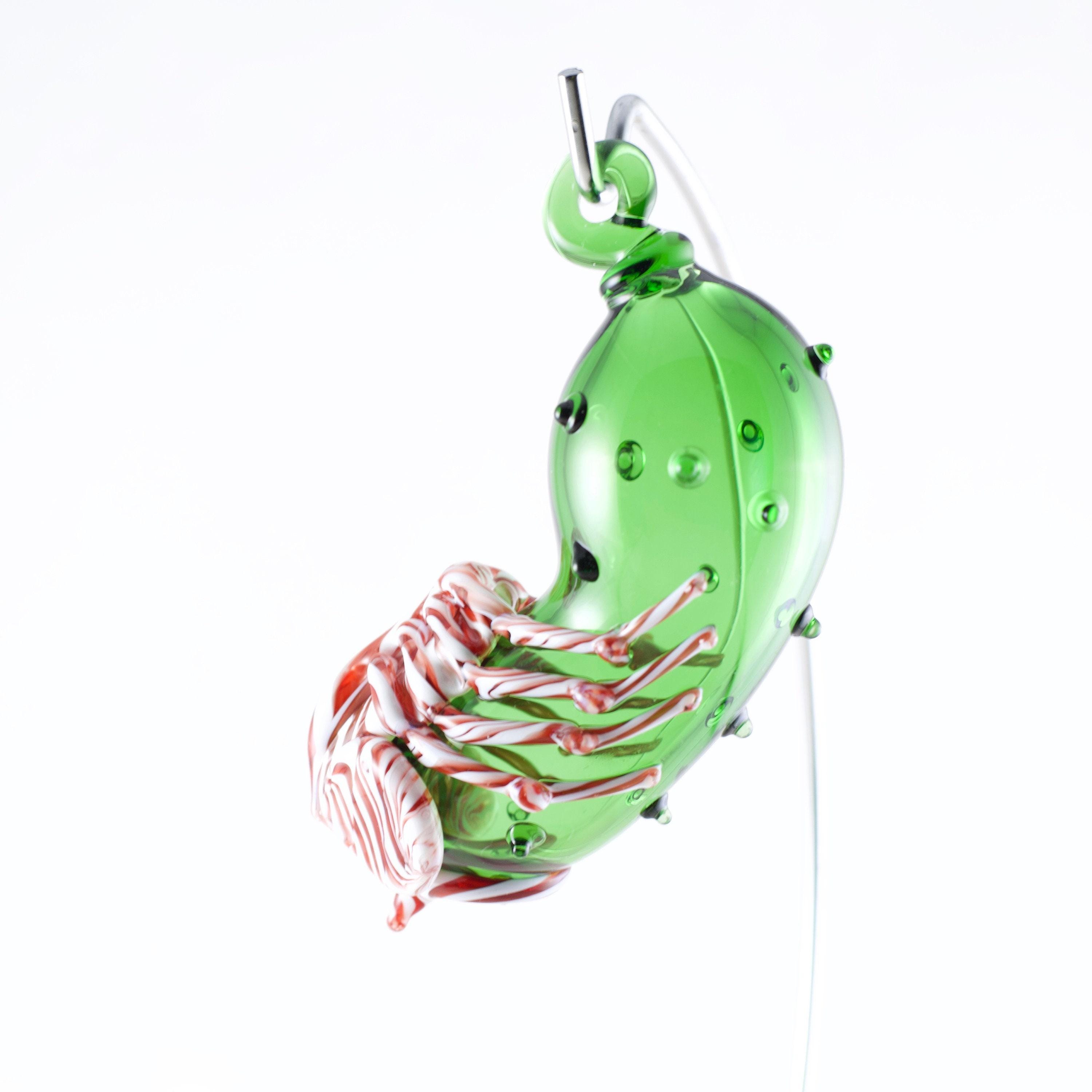 "We're on an express elevator to hell. Going down!" Add a little creepy to your Christmas with our unique hand blown glass Facehugger Christmas Pickle in delicious Peppermint Swirl. Made to order, created and shipped within 1-2 weeks.