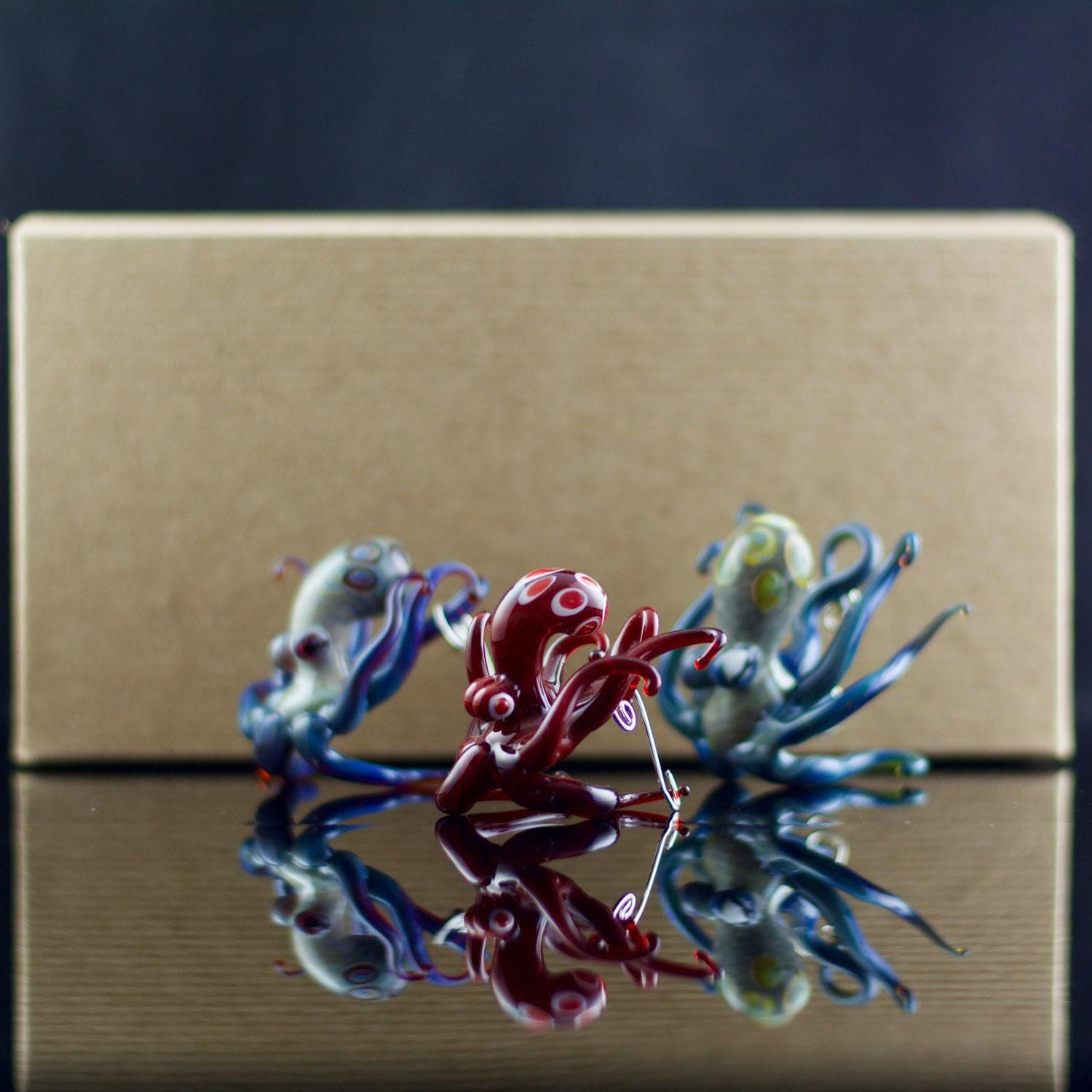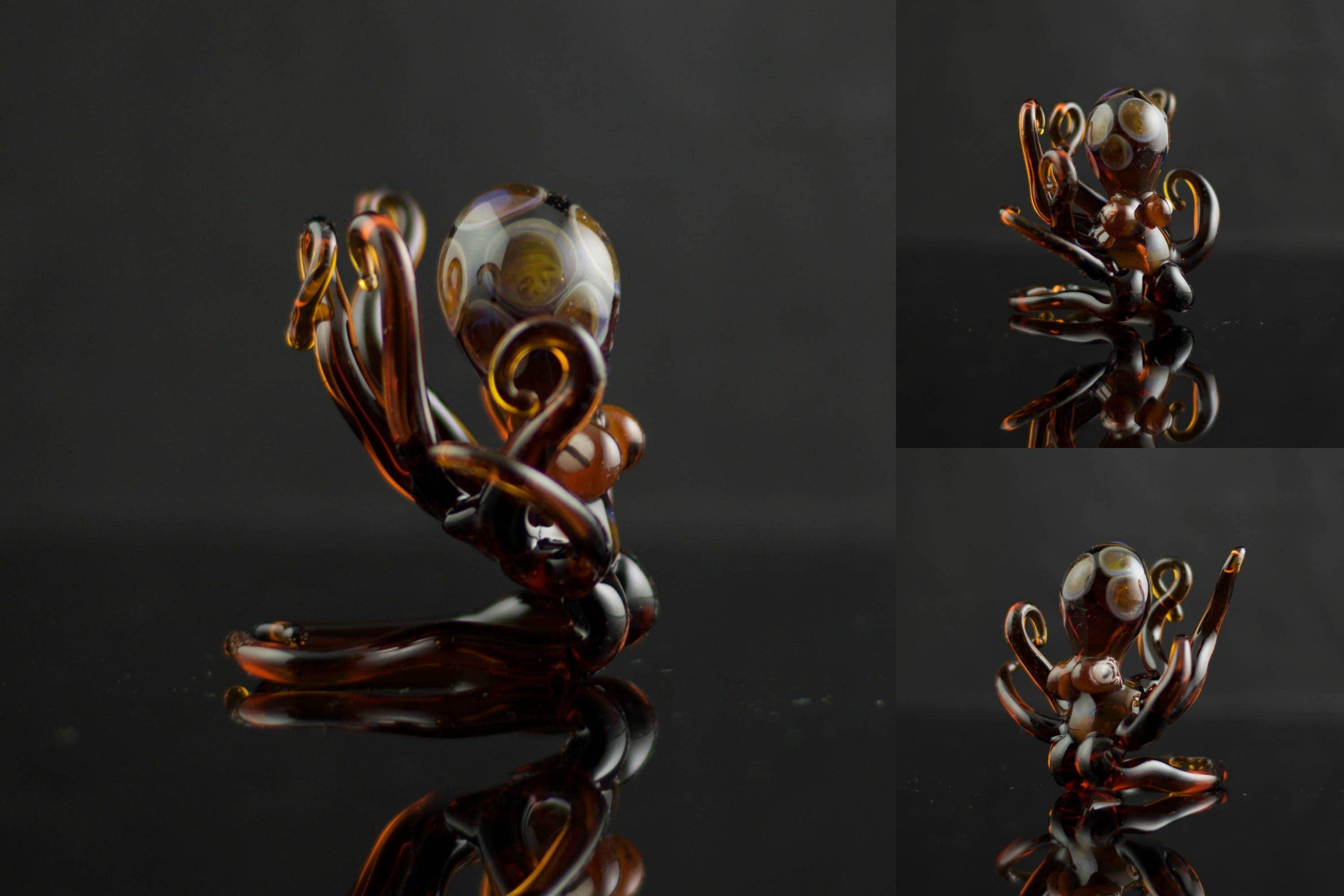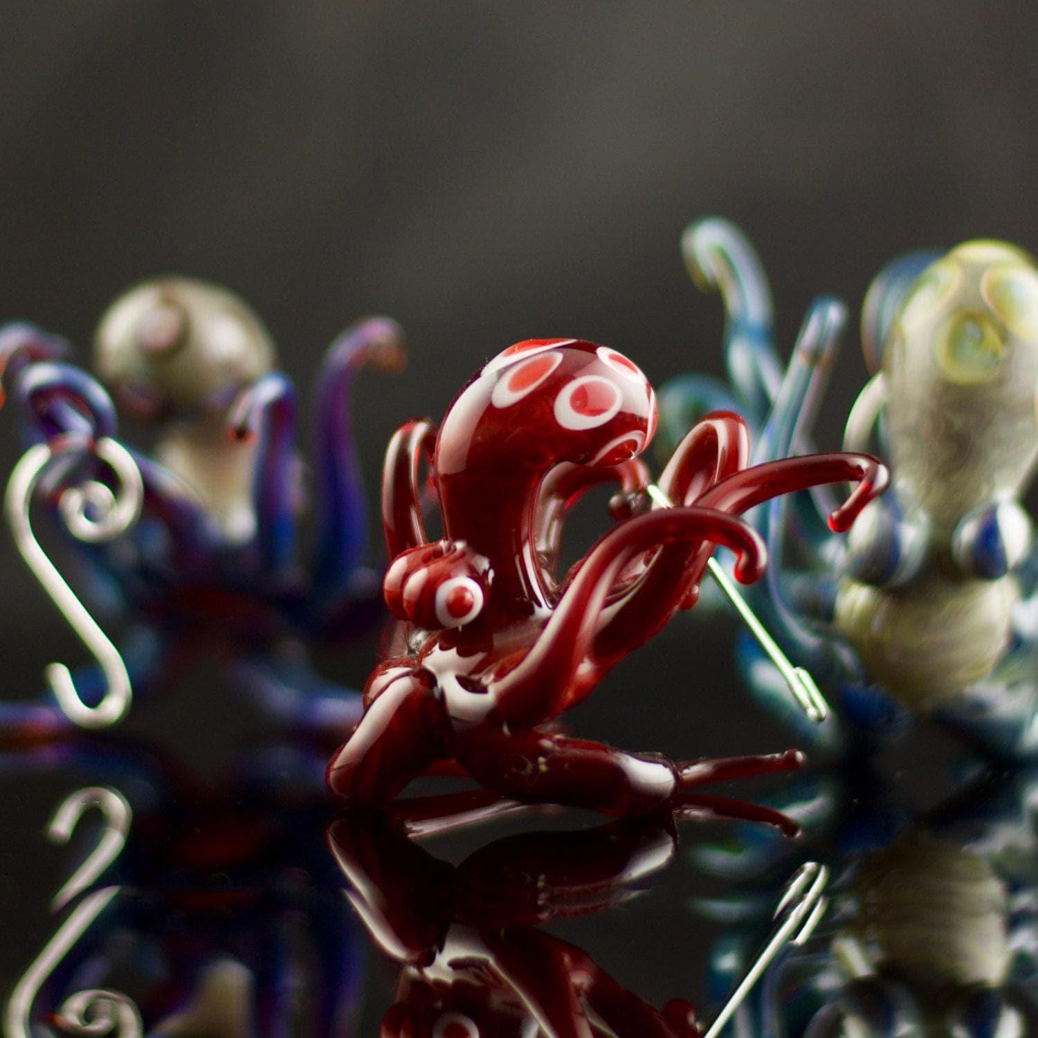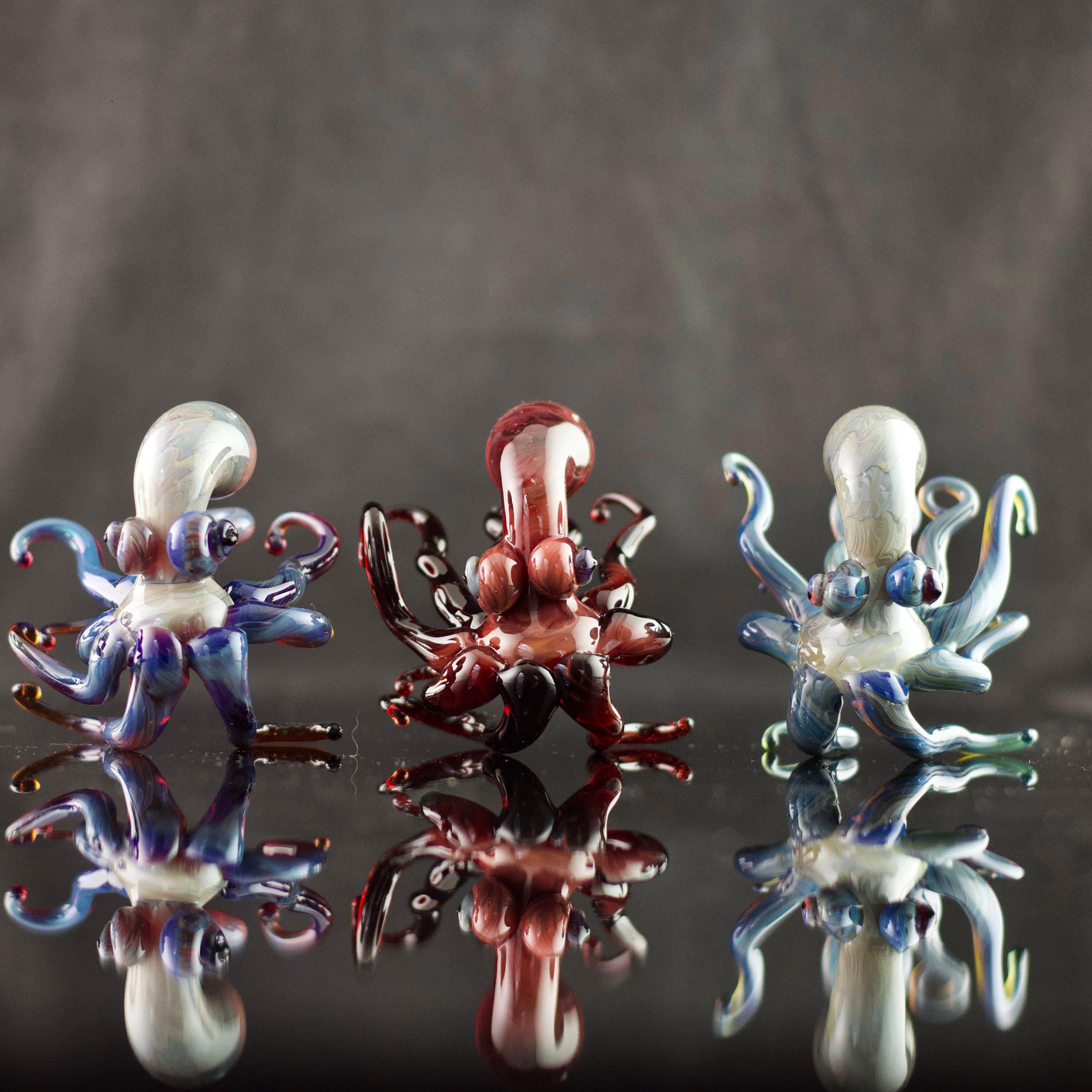 This distinct handmade flamework glass Octopus ornament is sure to get your guest's attention. Plus, Brent cleverly designed this piece to be used as both an ornament (included decorative swirl hook) as well as a figurine, perfect for year round display. Made to order, created and shipped within 1-2 weeks.