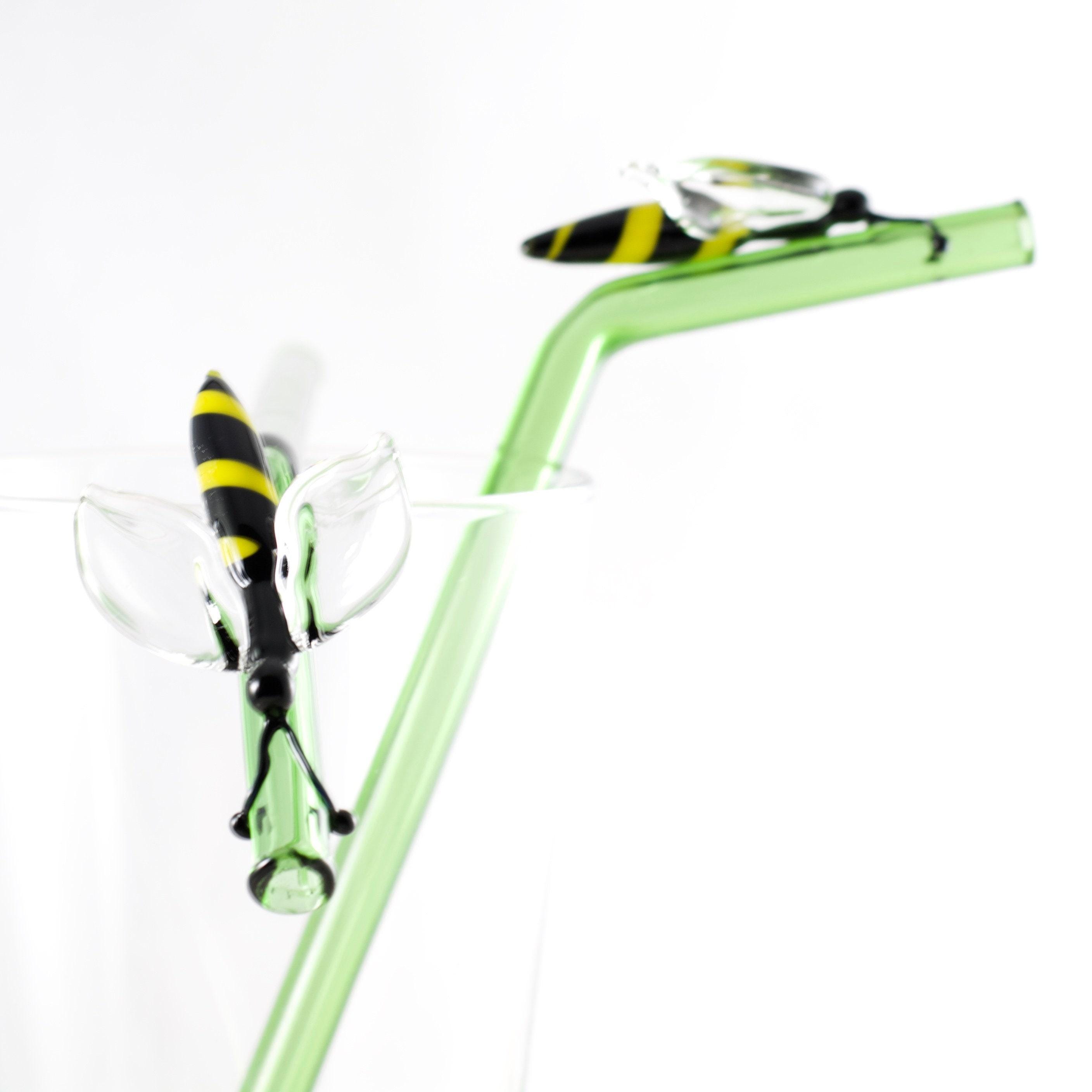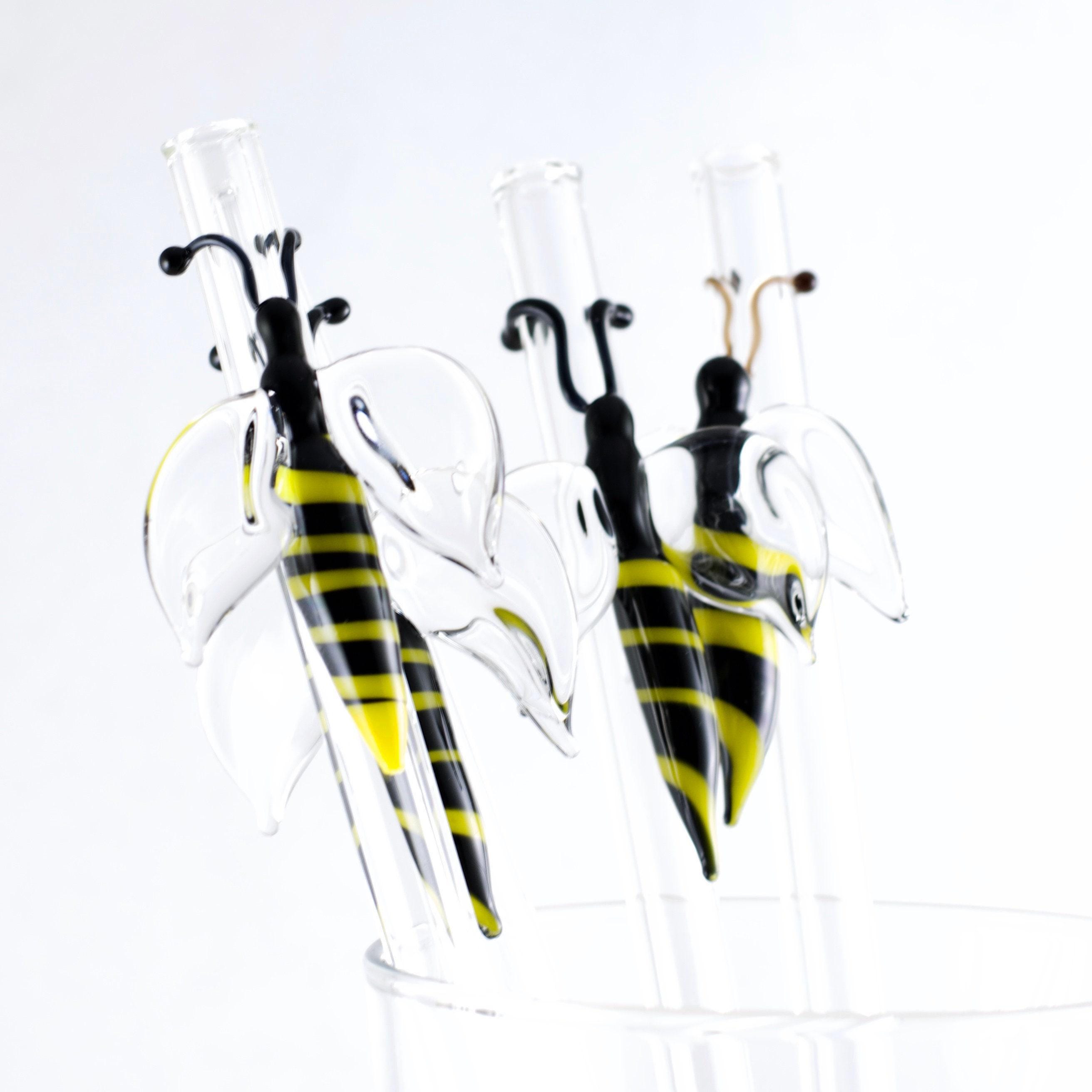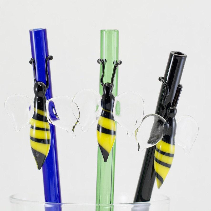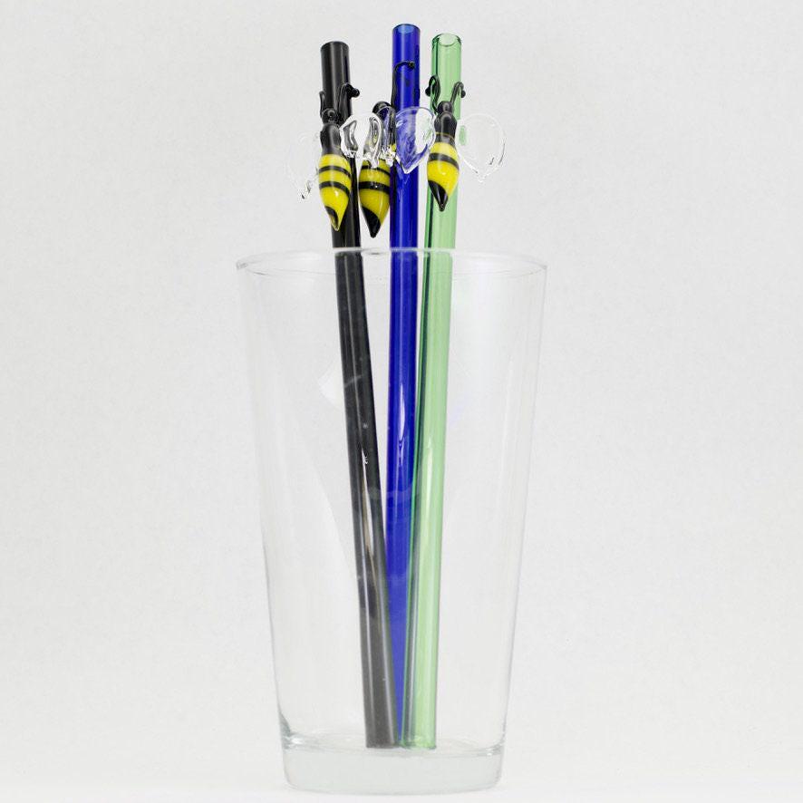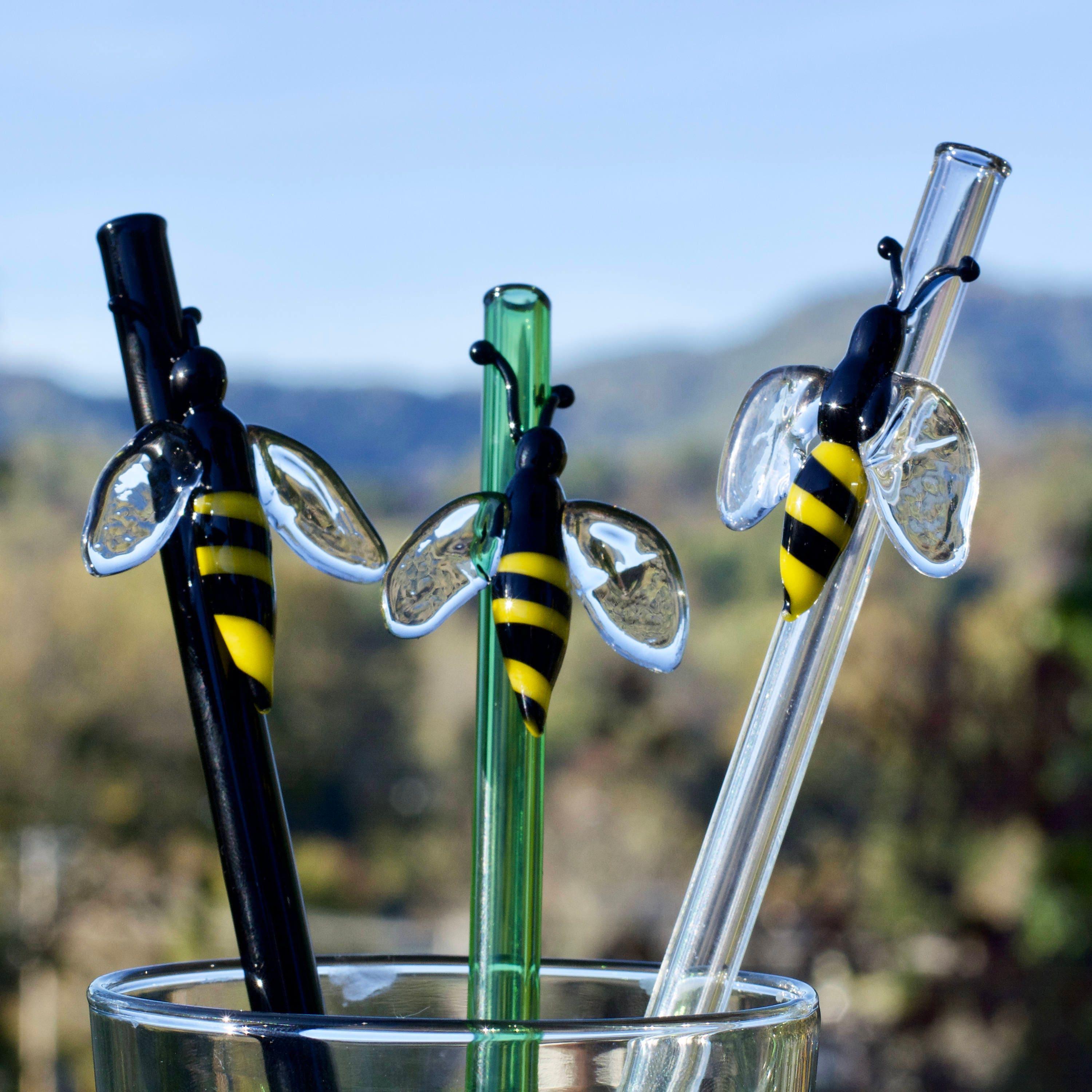 Reusable hand-blown glass straw with a flamework honey bee. Made to order, created, and shipped within 3-5 days.