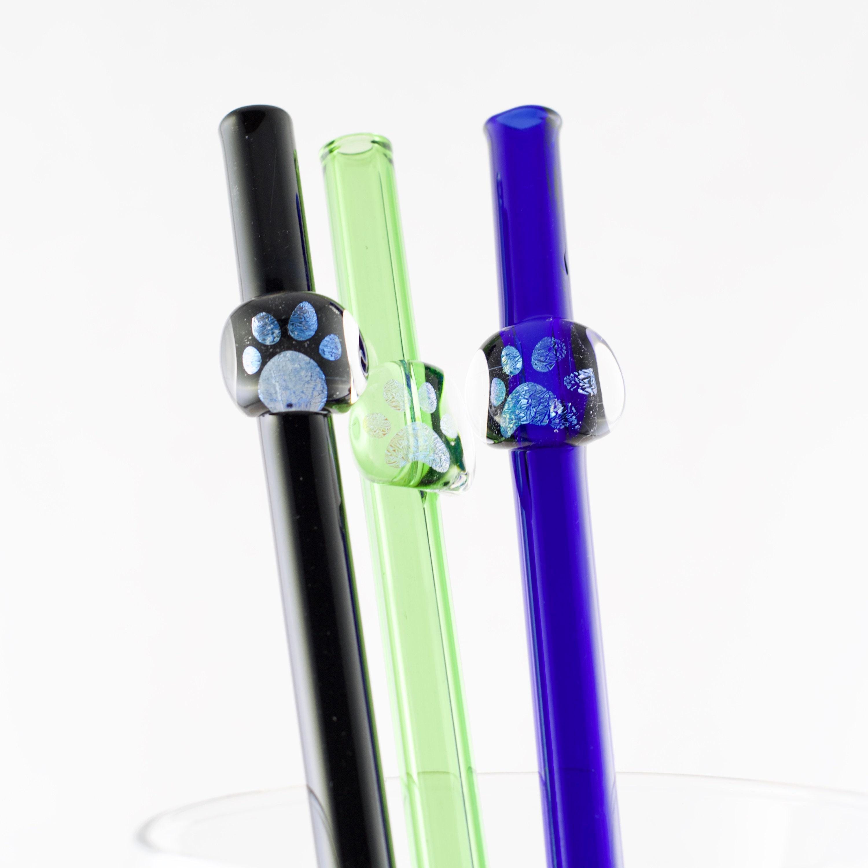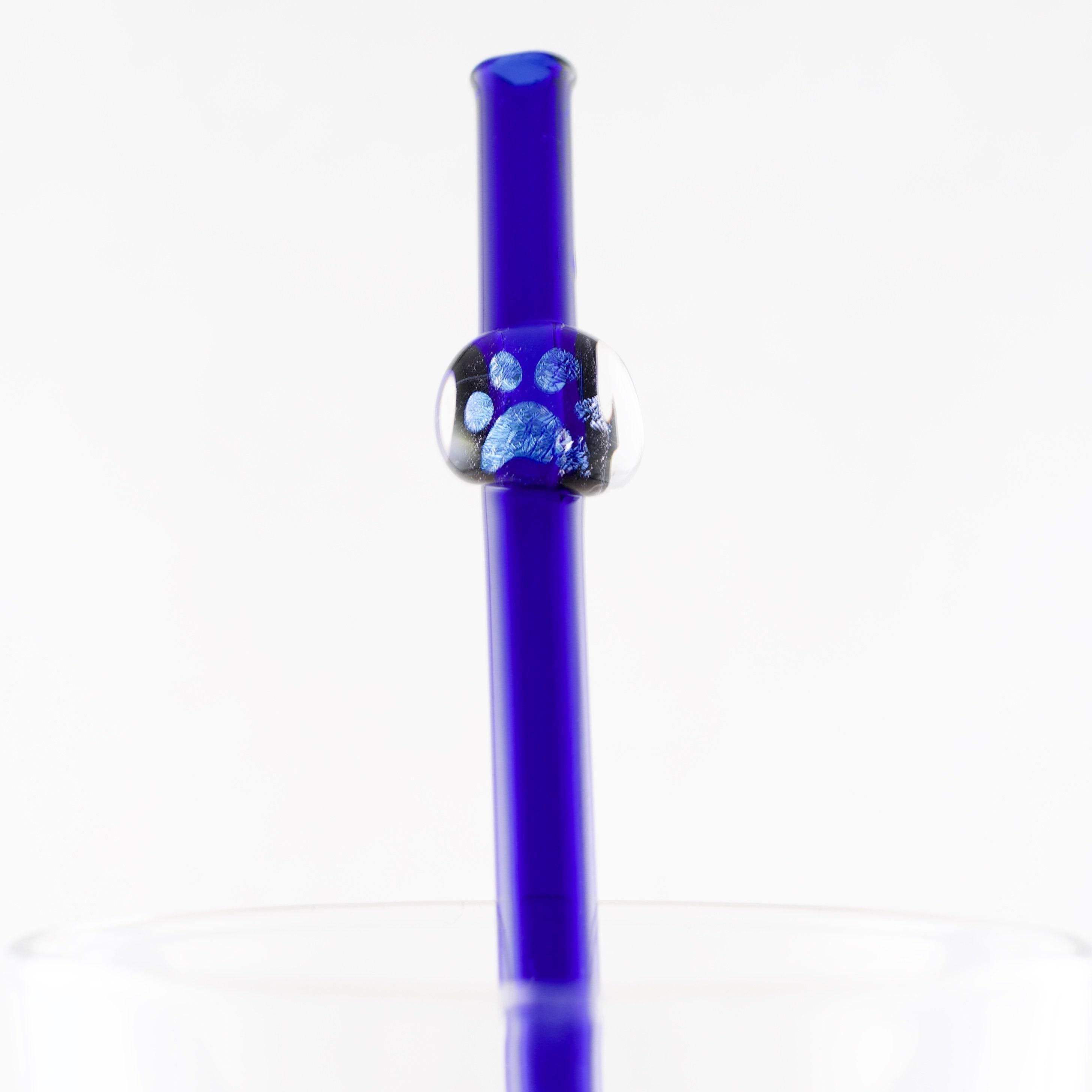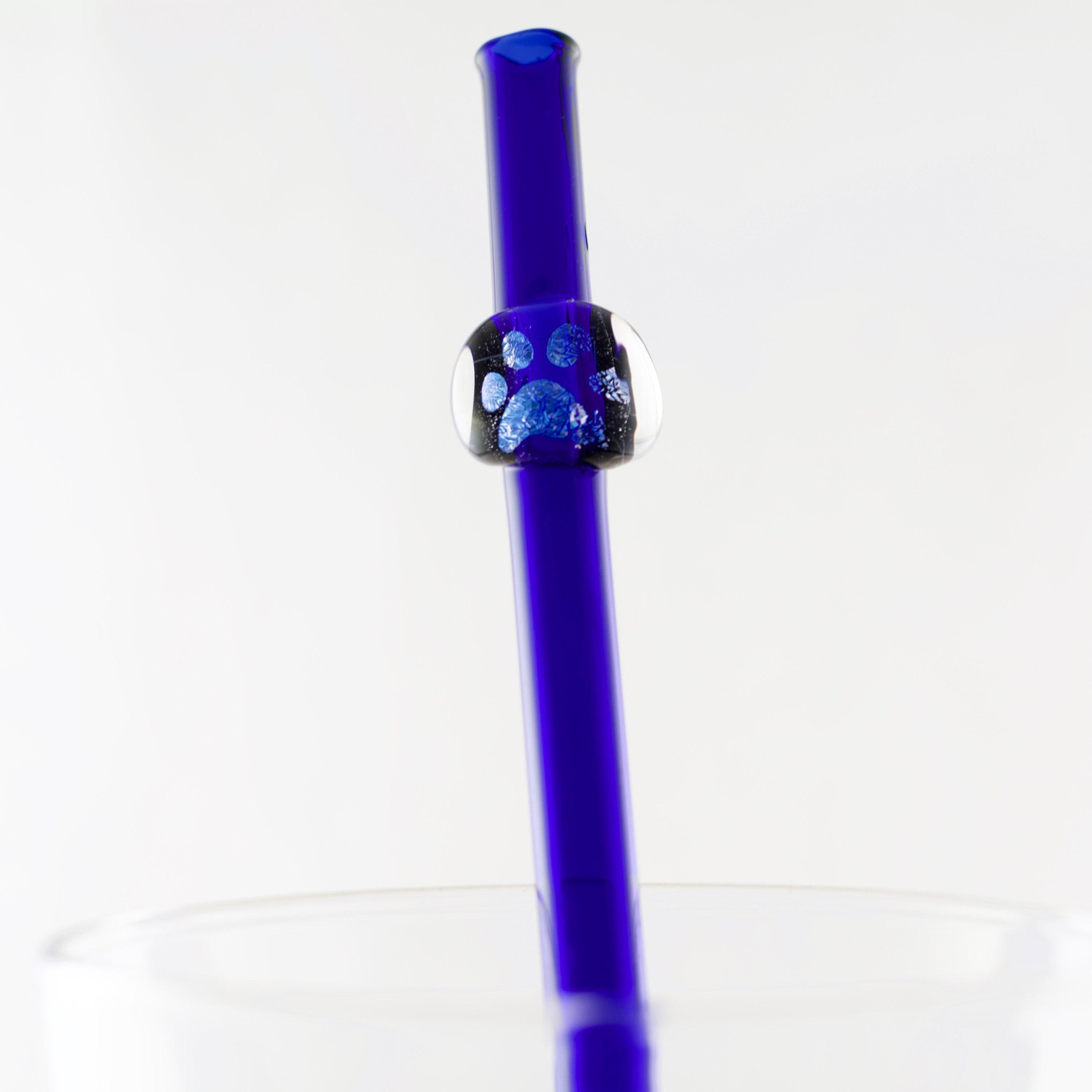 Reusable hand blown glass straw with a sparkling dichroic glass paw print. Made to order, created and shipped within 3-5 days.