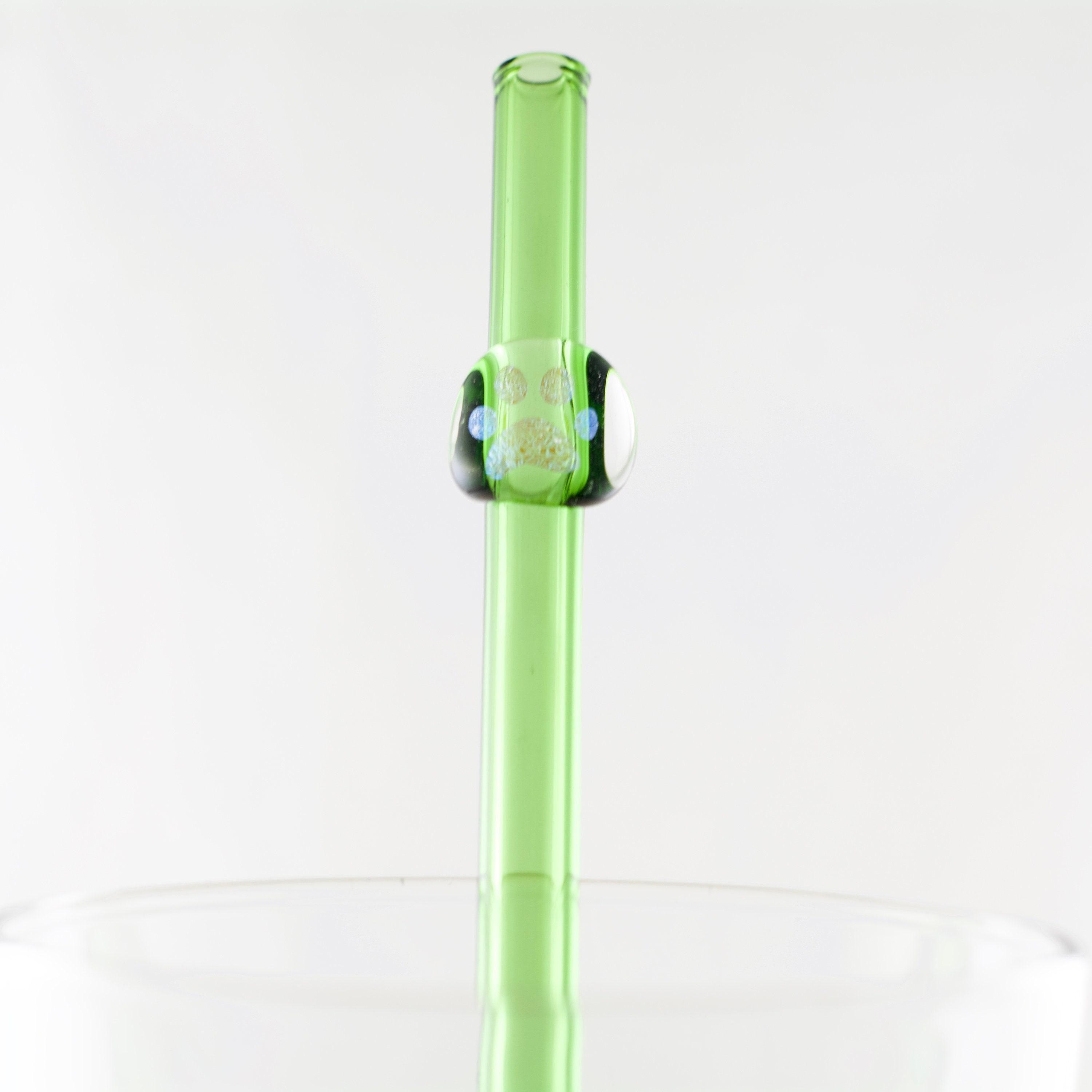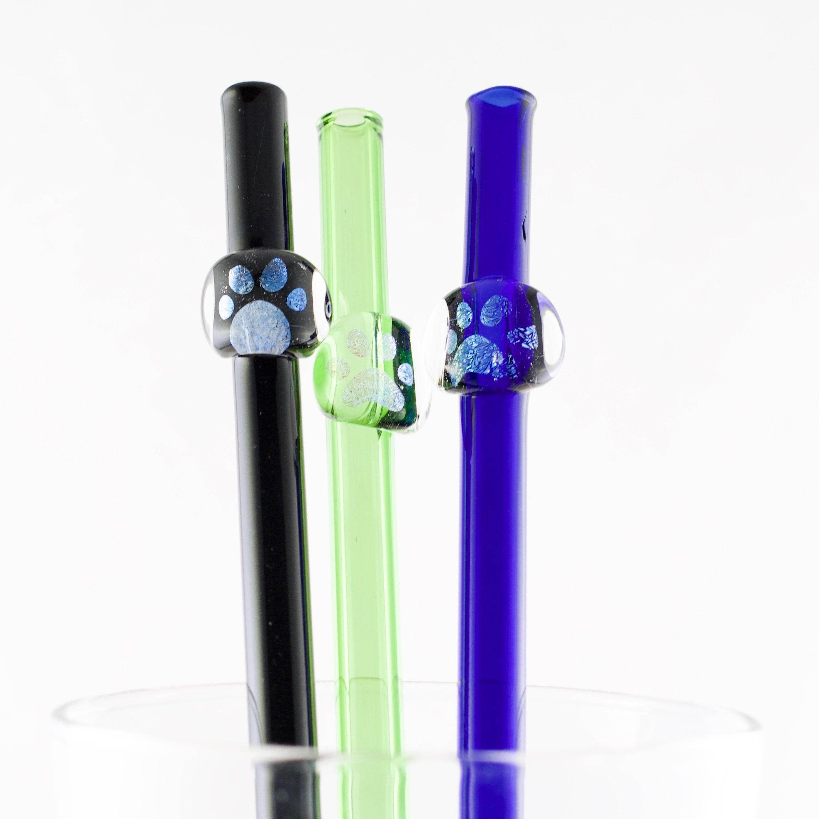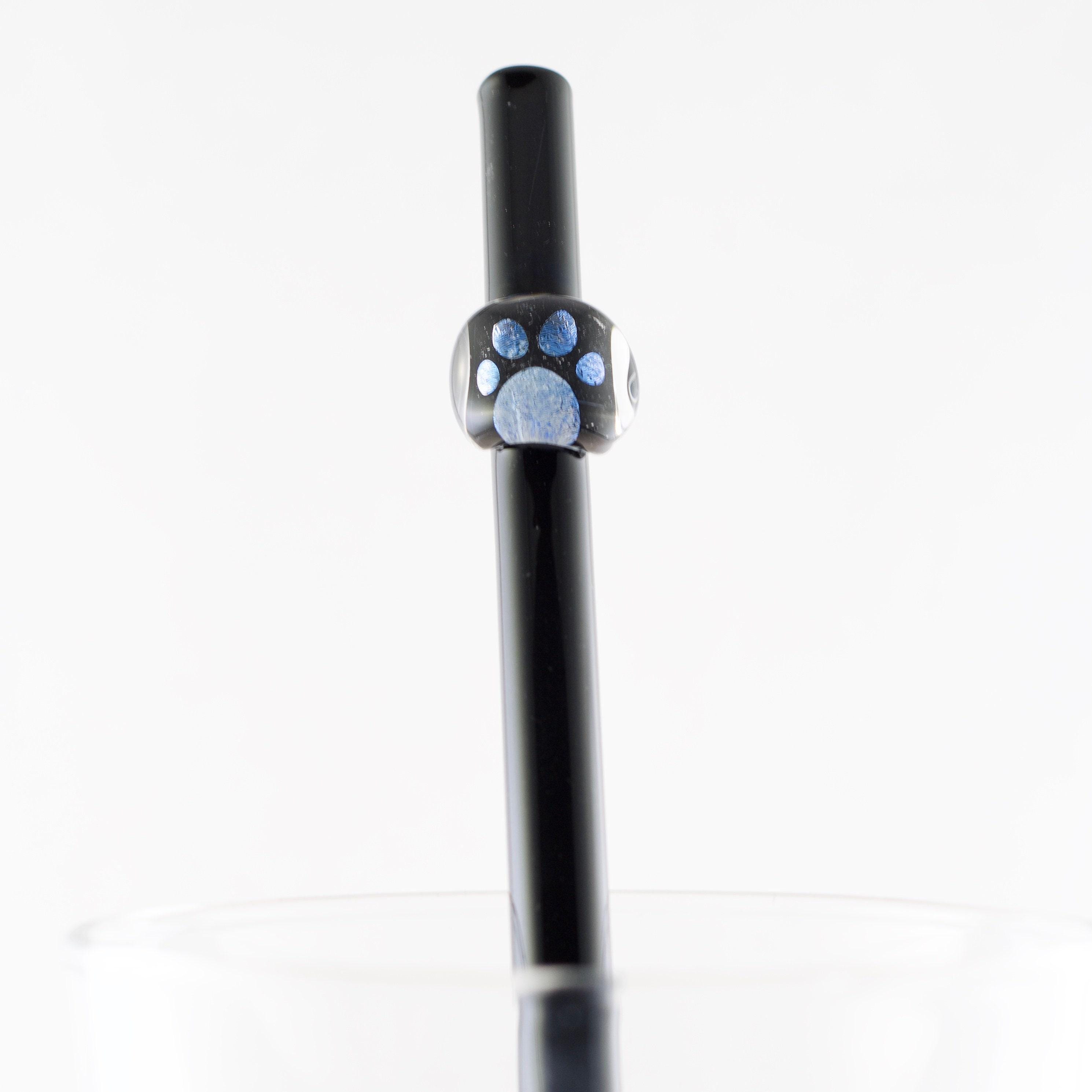 Reusable hand blown glass straw with a sparkling dichroic glass paw print. Made to order, created and shipped within 3-5 days.